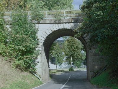 Wegdurchstich, Bestandteil der 1877 eröffneten „Waldbahn“ von Plattling nach Bayerisch-Eisenstein, rundbogiges Tonnengewölbe mit Vertreppung und Böschungsmauern, bossiertes Quadermauerwerk; bei Km 121,2