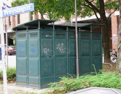 Straßenpissoir Kellerstraße, paraventartige Gusseisenkonstruktion, Ende 19. Jahrhundert, mit Beschlagwerkornament