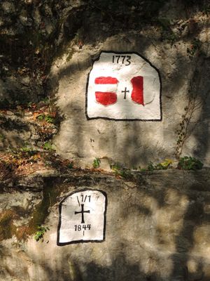 Boundary marking Ländeweg, historic boundary marking between Füssen, Germany, and Vils, Austria
