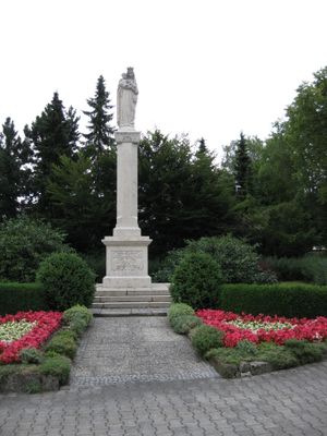 Mariensäule, Postament mit polygonaler Säule und Marienfigur, bezeichnet 1938