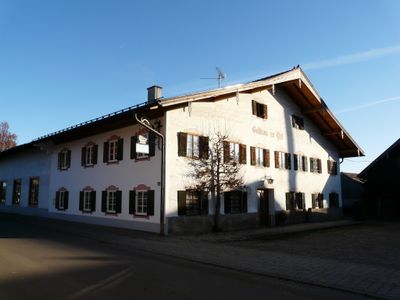 Gasthof, zweigeschossiger langgestreckter Putzbau mit flachem Satteldach, Stallteil und Festsaal, im Kern Ende 18. Jahrhundert