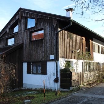 Beim Schmied, ehemaliges Kleinbauernhaus, zweigeschossiger verputzter Einfirsthof mit flachem Satteldach und Hochlaube, um 1685, verändert im 19. Jahrhundert, Wirtschaftsteil modernisiert