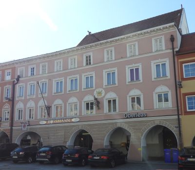 Ludwigstraße 46, stattlicher dreigeschossiger Bau zu neun Obergeschossachsen, traufständig, der Westteil der erdgeschossigen Lauben mit Kreuzgratgewölben und Gurtrippen des 16. Jahrhunderts, Fassade klassizistisch, um 1800, geschmiedeter Wirtshausausleger gleichzei