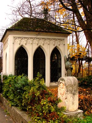 The Kapelle zur Schmerzhaften Muttergottes is a place of worship in northern Augsburg with a single-hall design. The structure features a barrel vault and a pentagonal choir section on its southern side.