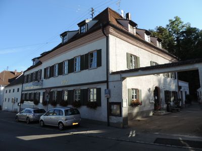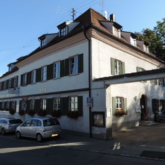 Gasthaus, ehemaliges Schloss, jetzt Gasthaus, zweigeschossiger Walmdachbau mit Traufgesims, im Kern um 1695/96 (dendrochronologisch datiert)