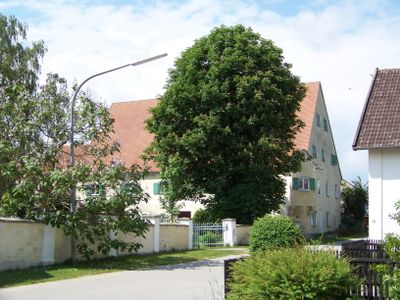 Ehem. Pfarrhof, Wohnhaus, zweigeschossiger und giebelständiger Satteldachbau mit Eckerker auf Kragsteinen und Rest eines Renaissanceportals im Anbau, 1696;