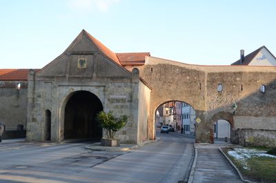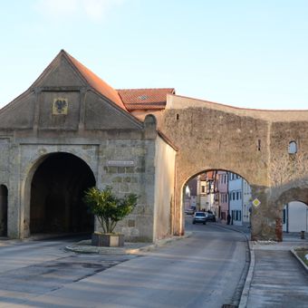 Baldinger Tor, stadttor, eingeschossiger Granitquadersteinbau mit Satteldach, spitzbogiges Durchfahrtstor mit kassettierter Tonne, nach Nordwesten firstgedrehtes Vortor mit Ziergiebel und Rundbogentor, Unterbau spätes 14. Jahrhundert., Ziergiebel des Vorbaus früh