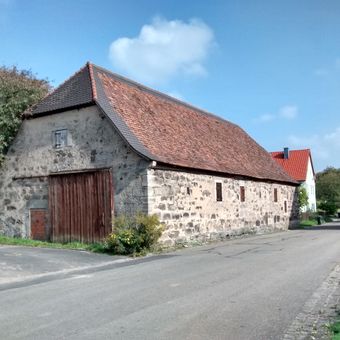 Ehemalige Zehntscheune, Bruchsteinbau mit Krüppelwalm, wohl 18.Jahrhundert
