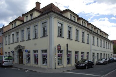 Wildensteinsches Palais, zweigeschossiger Walmdach-Eckbau, zweiflügelig, Stuckfelderung im Flur, Treppenhaus und einem Eckzimmer, Treppengeländer mit Balustern, 1722