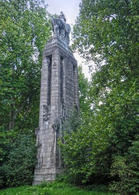 Bismarck-Denkmal, reiterstandbild des Kanzlers Otto von Bismarck auf hohem turmartigen Sockelbau, Muschelkalk, 1913/14 nach einem Entwurf von Theodor Fischer und Josef Floßmann