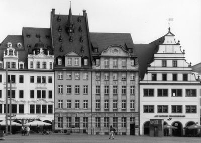 Hausfassaden und Dach Markt 7, building in Leipzig, Saxony, Germany