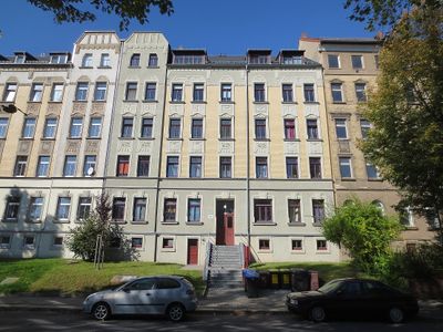 Mietshaus in halboffener Bebauung in Ecklage mit Vorgarten zur Franz-Mehring-Straße Limbacher Straße 65
