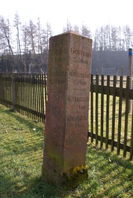 Wegestein Stollsdorf, Porphyr, mit km-Angaben, verkehrsgeschichtlich von Bedeutung