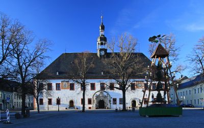 Ehemaliges Bergamt, jetzt Wohnhaus in geschlossener Bebauung, mit Gedenktafel für Oberberghauptmann von Trebra Freiberger Straße 4