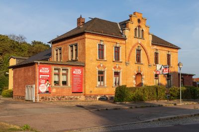 Mietshaus in offener Bebauung Talstraße 14, markanter neogotisch wirkender, historisierender Bau mit Klinkerfassade, spitzem Blendbogen und Treppengiebel, baugeschichtlich und wohl auch für Nossener Verhältnisse künstlerisch bedeutend Verblendziegel