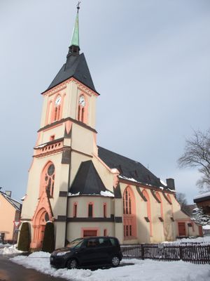 Kirche Mauersberg, Neogotische Saalkirche mit eingezogenem Chor und Westturm, nach einem Entwurf des Architekten Theodor Quentin errichtet, baugeschichtlich, künstlerisch und ortsbildprägend von Bedeutung. Einschiffiger neugotischer Bau mit ungewöhnlicher Dachkonst