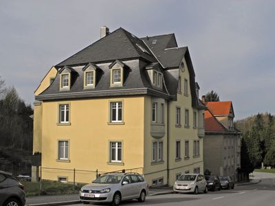 Villa und Villengarten (Gartendenkmal) eines ehemaligen Blumenfabrikanten mit Einfriedung Bahnhofstraße 12