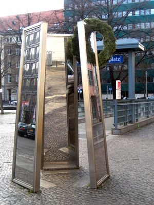 Denkzeichen Modezentrum Hausvogteiplatz, multi-part memorial by Rainer Görß in Berlin to commemorate Jewish textile companies formerly located on the square