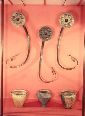 The Brudevælte Lurs, Bronze Age musical instruments at National Museum of Denmark, Copenhagen.