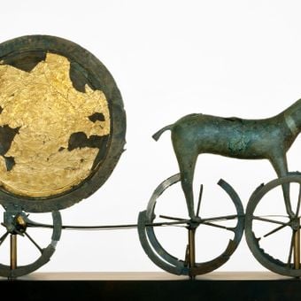 A farmer uncovered the object in 1902 while working in a bog near Trundholm. It was made around 1400 before the common era when people in the Nordic region started using bronze for art and ritual objects.