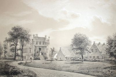 The yellow brick manor house rises over two stories with a slate roof above a high basement, situated 20 kilometers west of Copenhagen.