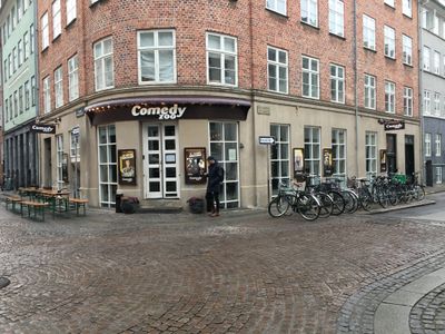 The venue presents Danish and international comedians through various formats including stand-up performances, open mic nights, and improvisational comedy shows.