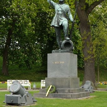 The sculpture was inaugurated in 1858 to commemorate Danish soldiers who fought in the First Schleswig War from 1848 to 1850.