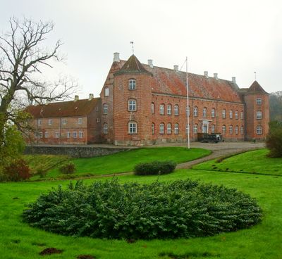 The manor house extends across 965 hectares, incorporating 600 hectares of farmland, 350 hectares of forest, and 40 hectares of lakes near the eastern Djursland coast.