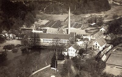 The mill represents Denmark's industrial evolution, transitioning through various productions from gunpowder to copper goods, paper manufacturing, and textile manufacturing until 1977.