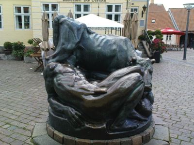 Ymerbrønden, Contemporary fountain sculpture in Torvet, Faaborg, Denmark.