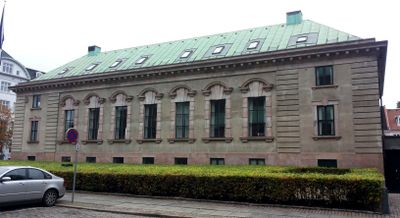 Originally constructed in 1926 as a Bank of Denmark branch designed by architect Axel Berg, the building replaced an earlier banking facility established in 1837 and has served the financial sector for nearly a century.