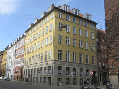 The building is well situated in Copenhagen's Old Town and easily accessible on foot, with shops at ground level and offices that remain busy throughout the day. The courtyard provides a quiet passage and is simple to navigate for pedestrians walking through the surrounding streets and neighboring structures.