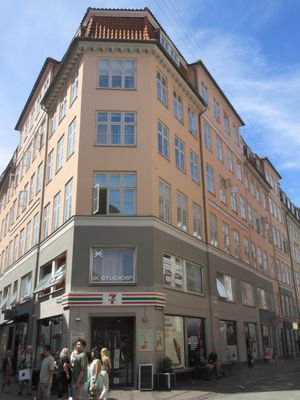Pilestræde 37, Protected building at the corner of Pilestræde and Kronprinsensgade, Copenhagen, Denmark.