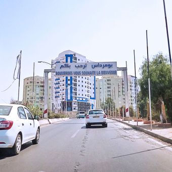 Boumerdès is a city in the Boumerdès District along Algeria's Mediterranean coast. It spreads across terrain between mountains and sea, mixing residential neighborhoods with industrial zones and shopping areas that line the main thoroughfares.