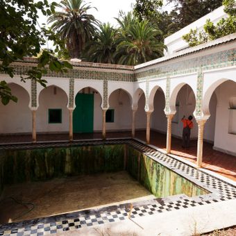 Located on a hill overlooking the Mediterranean Sea, Villa Abd-el-Tif features detailed tile work and stucco decoration in traditional Moorish architectural style.
