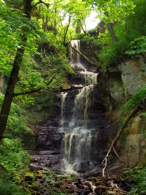 The waterfall formation process began through erosion of sandstone beneath limestone escarpments, shaping the landscape since the 13th century.