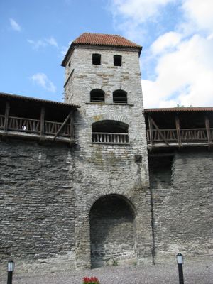 Visitors can access Saunatorn through guided tours of Tallinn's wall system, which includes paths connecting multiple preserved defensive structures throughout the Old Town.
