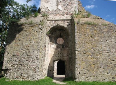 The remains of Käina Church, constructed between the 15th and 16th centuries, stand in the center of Käina village on Hiiumaa island.