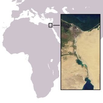 Suez Canal, Ship canal in Isthmus of Suez, Egypt.