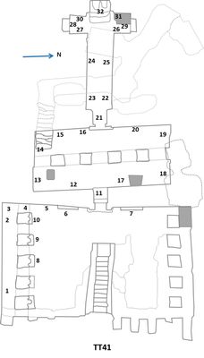 Located in the eastern section of Sheikh Abd el-Qurna, TT41 contains multiple chambers decorated with wall paintings depicting scenes from ancient Egyptian life.