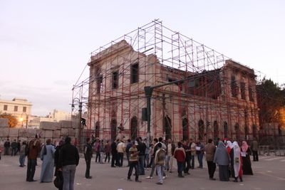Visitors can access the reconstructed building near Tahrir Square, which houses restored collections following the 2011 fire that damaged the original structure.