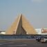 The Unknown Soldier Memorial honors fallen fighters from the October War of 1973 and takes the form of a pyramid. The geometric structure stands out clearly from surrounding residential buildings.