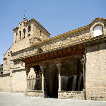 The Cathedral of Jaca is a Romanesque structure in the town of Jaca featuring three naves that lead to semicircular apses, thick stone walls, and an octagonal dome above the crossing. The building impresses with its robust proportions and carefully dressed stone elements throughout.