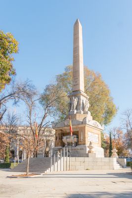 The 5.6-meter granite, limestone, and marble monument features sculptures and an obelisk designed by architect Isidro González Velázquez in neoclassical style.
