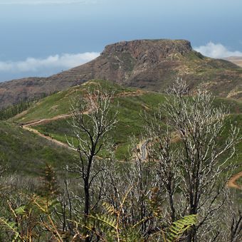 This volcanic dome, made of trachyandesite, measures 300 meters in diameter and contains protected plant species like Limonium redivivum and Cheirolophus satarataënsis.