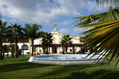 The Grupo Estévez facility contains modern offices, aging cellars, bottling plants, warehouses, laboratories, and controlled fermentation units across their grounds.