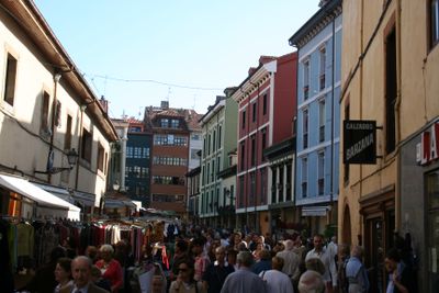 The market operates on Thursdays, Saturdays, and Sundays, offering fresh flowers, local crafts, and regional products from Asturias.