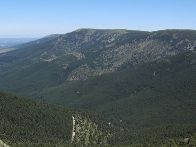 The mountain's position offers simultaneous views of multiple valleys in the Montes Carpetanos, creating distinct perspectives of the surrounding landscapes.
