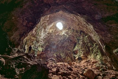 The interior chamber reaches heights of 50 meters, creating a natural dome structure within the mountain.