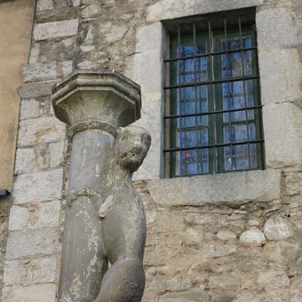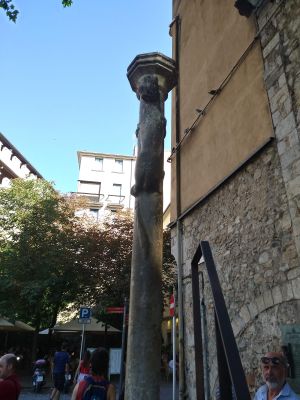 The Cul de la Lleona is a medieval stone figure of a lioness mounted on a column at the base of the Sant Feliu Church staircase in Girona. Today a modern metal staircase with handrails makes the sculpture easily accessible to visitors.